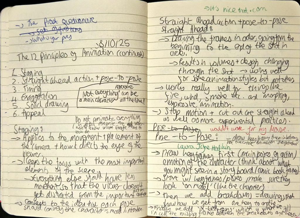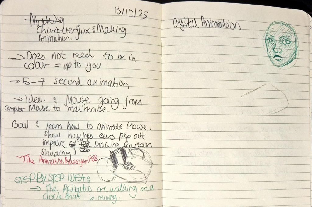 Since the overall assignment (including the motion plan) involves creating a triptych from the original character experimentations that we did last week (alongside the character sheet, expression sheet and character turnarounds) I also asked Jess whether we could include additional information about our character’s personality and the original character designs I made alongside some physical characteristics, and she said we could. Therefore, on Thursday I finished my motion plan of Mouse, which is shown below: