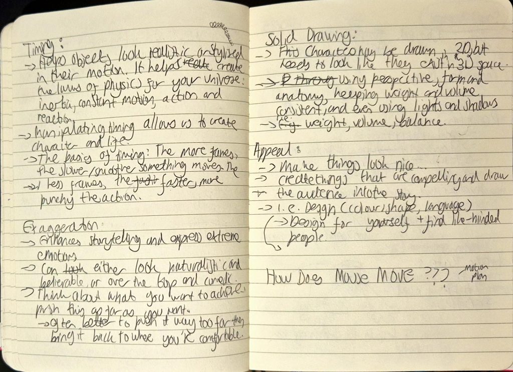 I didn’t end up writing notes for each principle because it was so difficult to think about how each one would be used in Mouse’s design and movements, and so I merely discussed 9 out of 12 of them, with visual evidence for squash and stretch and exaggeration.